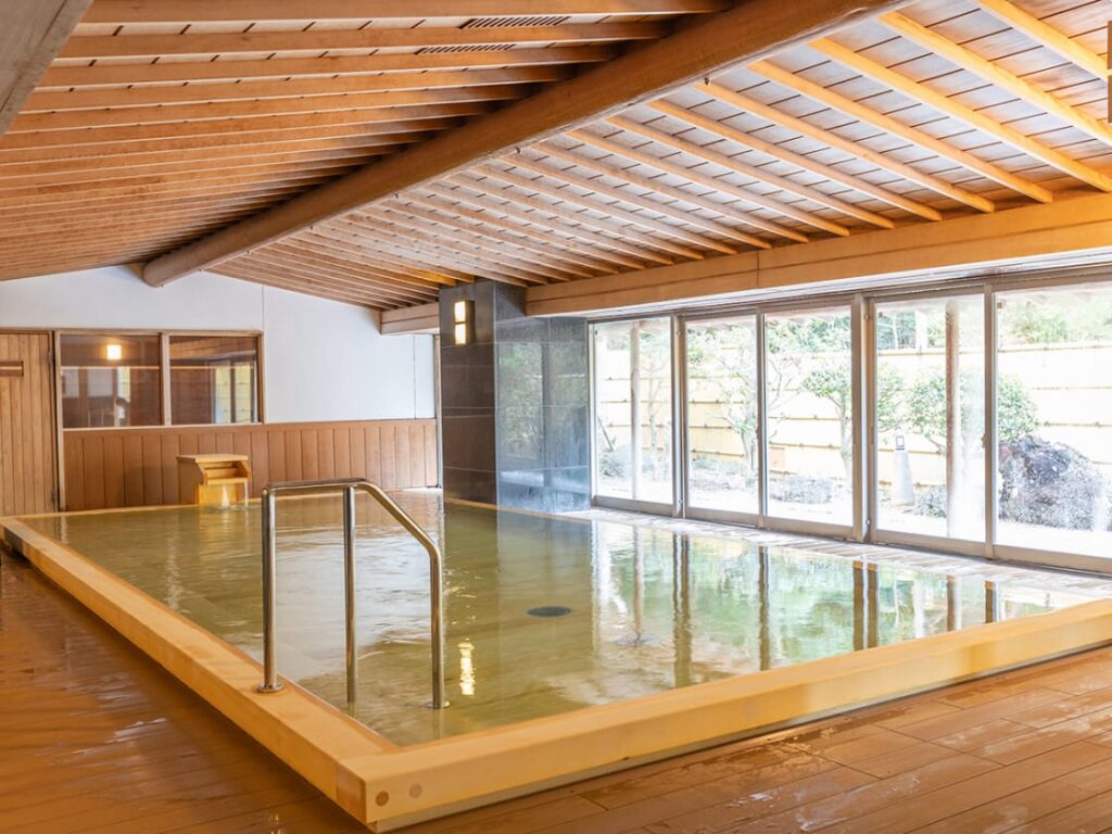 湯船のスケール感があって、旅先の非日常が濃い。
